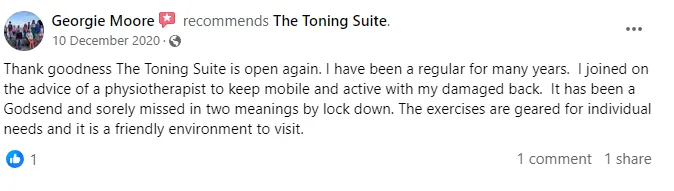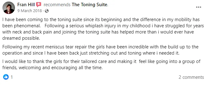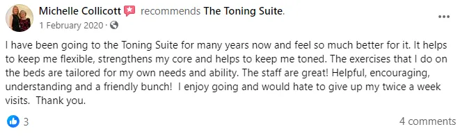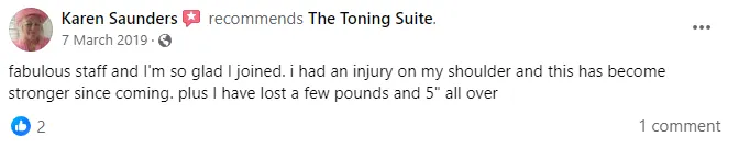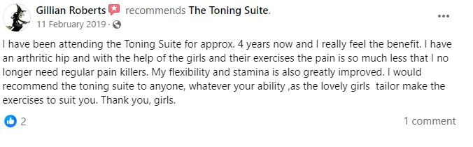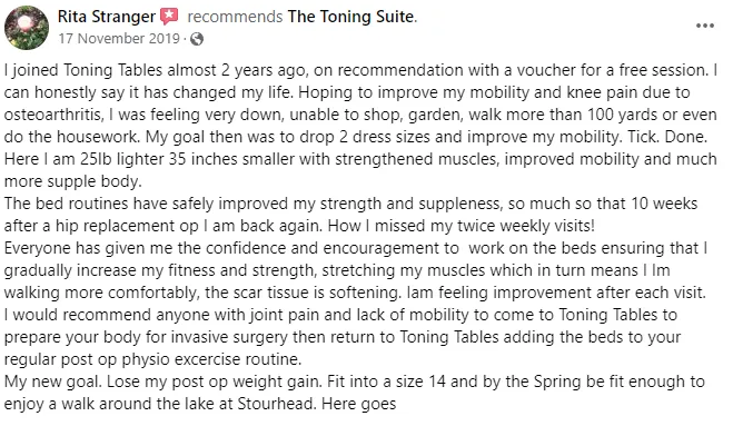 "I have lost 17" since joining The Toning Suite. I'm completely back pain free and enjoy coming in for every session."